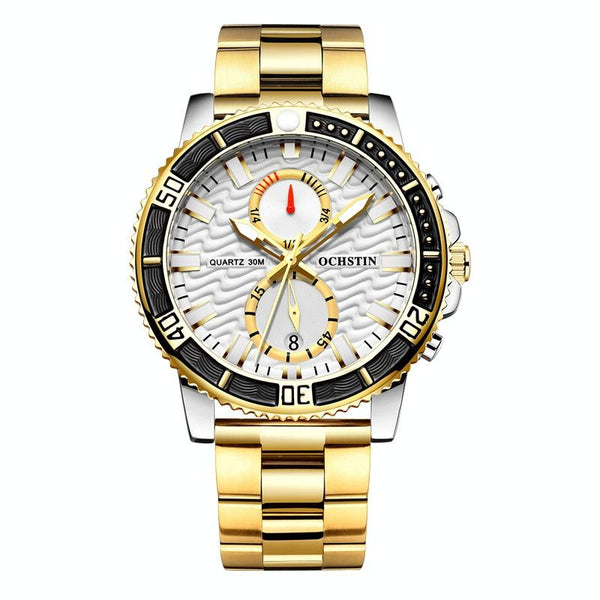 OCHSTIN 7250 Fashion Steel Strap Multifunctional Quartz Men Watch(Gold)
