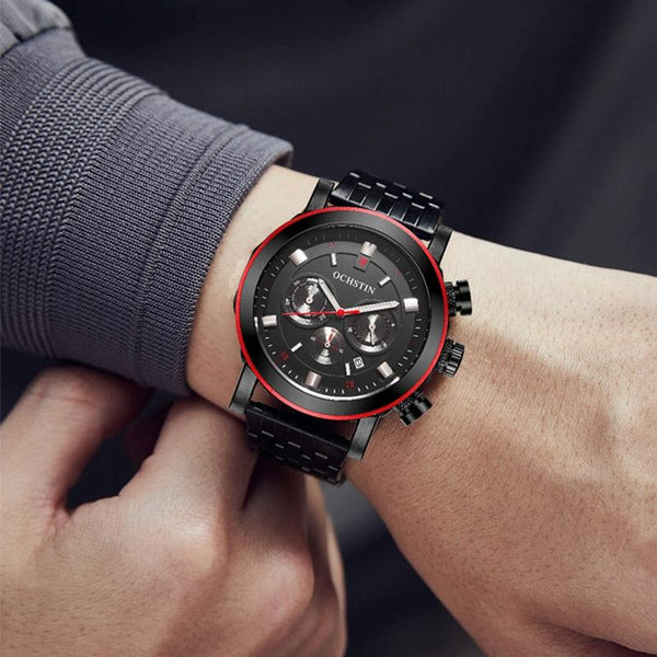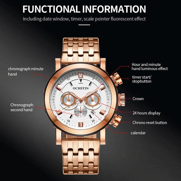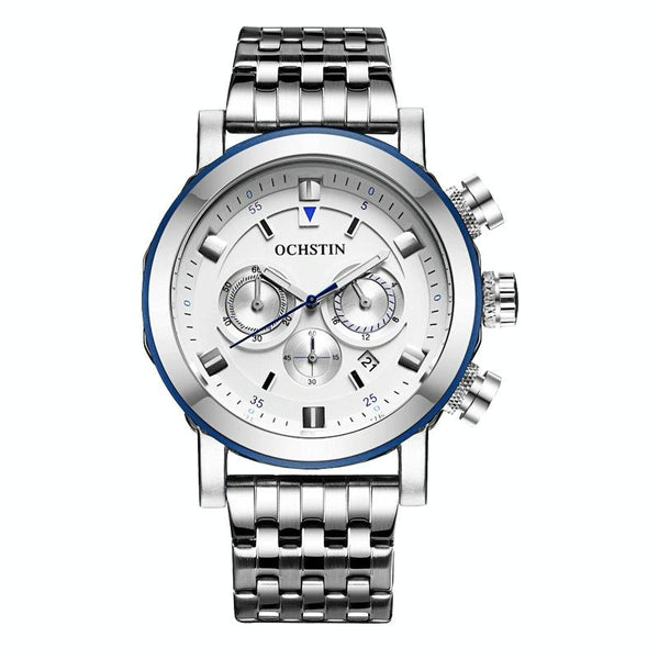 OCHSTIN 7254 Fashion Steel Strap Multifunctional Quartz Men Watch(Silver White)