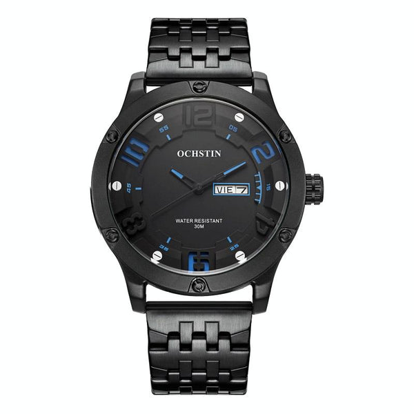 OCHSTIN 7255 Fashion Steel Strap Day-date Quartz Men Watch(Black Blue)