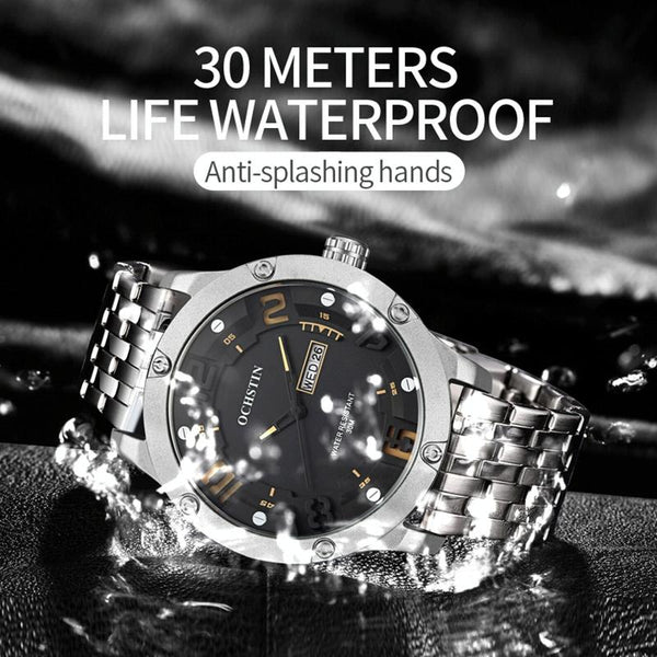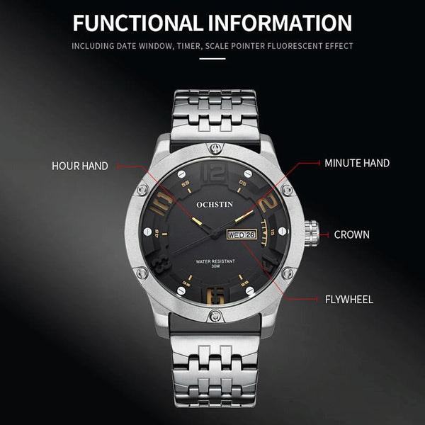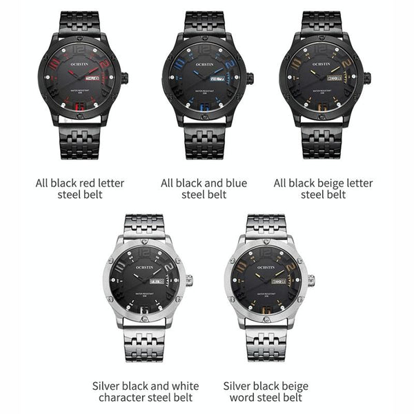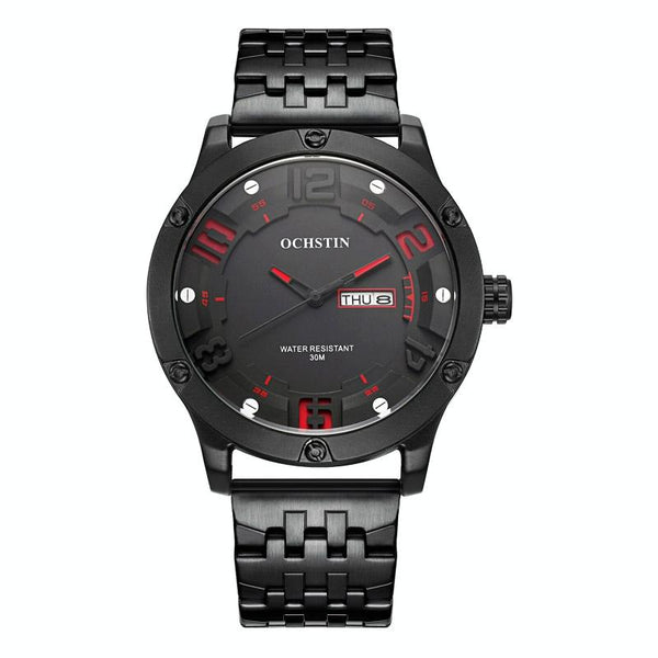 OCHSTIN 7255 Fashion Steel Strap Day-date Quartz Men Watch(Black Red)