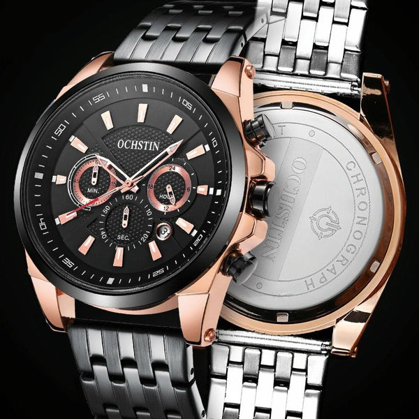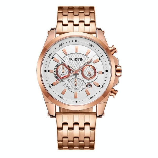 OCHSTIN 7256 Fashion Steel Strap Multifunctional Quartz Men Watch(Rose Gold White)