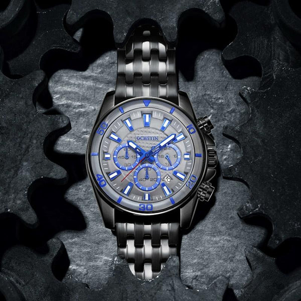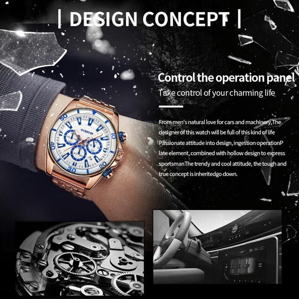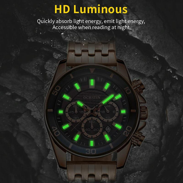 OCHSTIN 7259 Fashion Steel Strap Multifunctional Quartz Men Watch(Rose+Coffee+Rose)