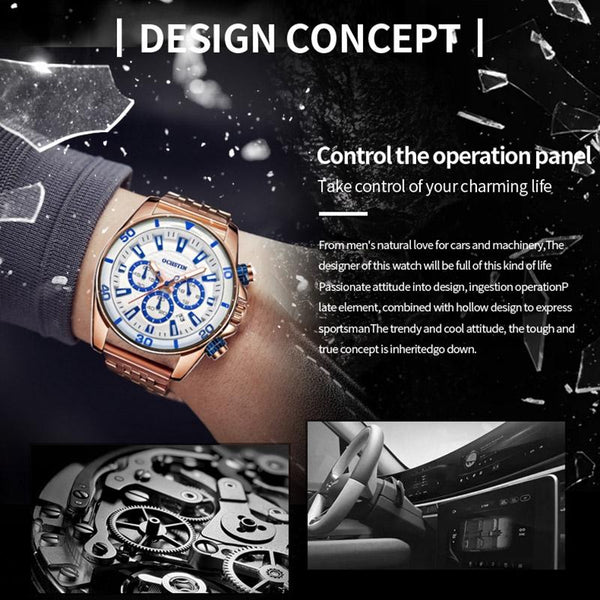 OCHSTIN 7259 Fashion Steel Strap Multifunctional Quartz Men Watch(Rose+White+Rose)