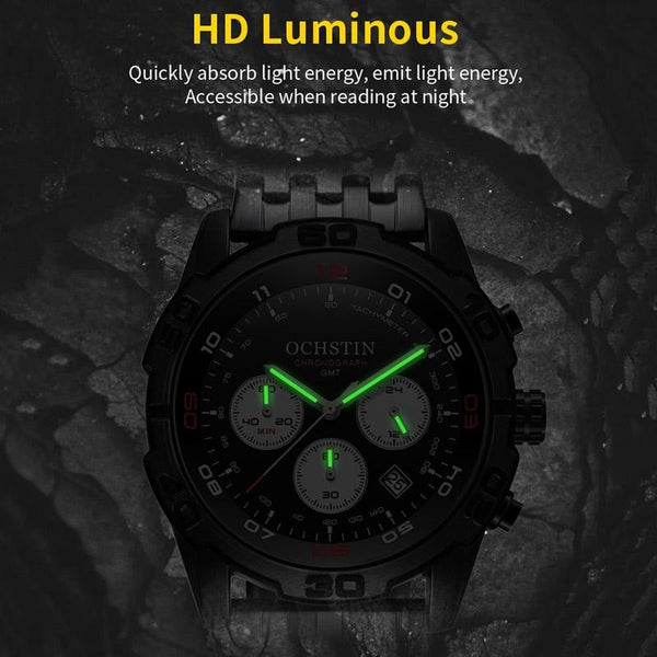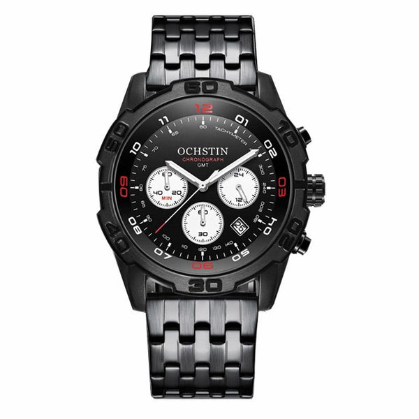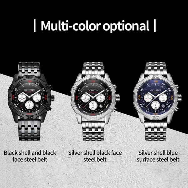 OCHSTIN 7260 Fashion Steel Strap Multifunctional Quartz Men Watch(Black)