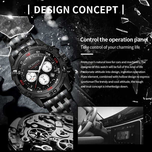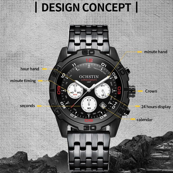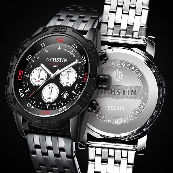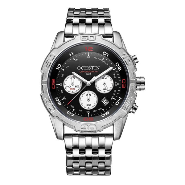 OCHSTIN 7260 Fashion Steel Strap Multifunctional Quartz Men Watch(Silver+Black)