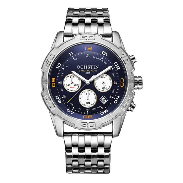 OCHSTIN 7260 Fashion Steel Strap Multifunctional Quartz Men Watch(Silver+Blue)