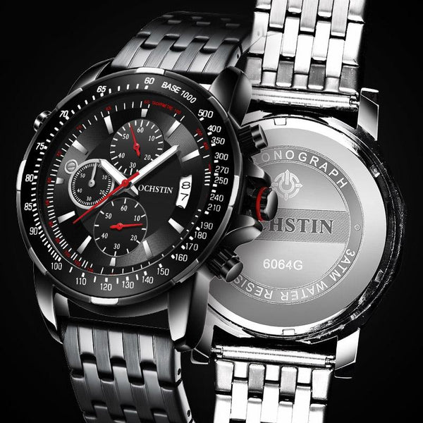 OCHSTIN 7261 Fashion Steel Strap Multifunctional Quartz Men Watch(Silver+Black)