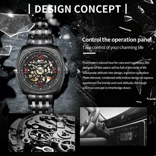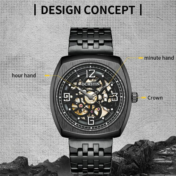 OCHSTIN 7262 Masterpiece Series Mechanical Steel Band Men Watch(Silver Blue)