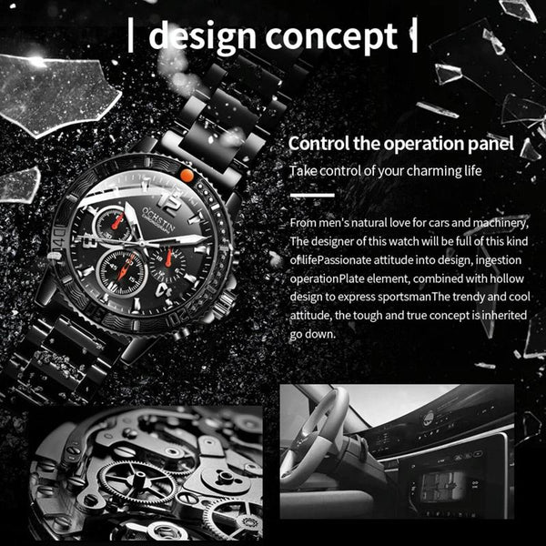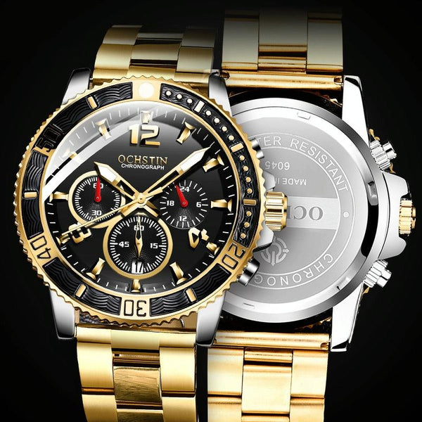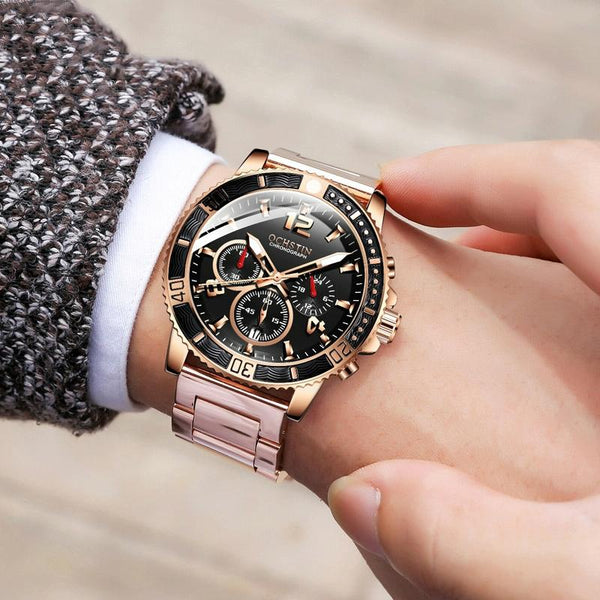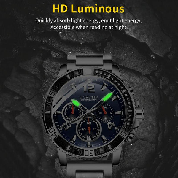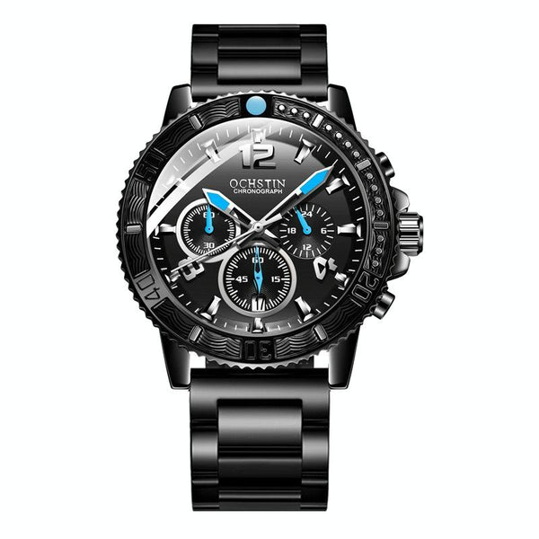 OCHSTIN 7263 Fashion Steel Strap Multifunctional Quartz Men Watch(Black Blue)