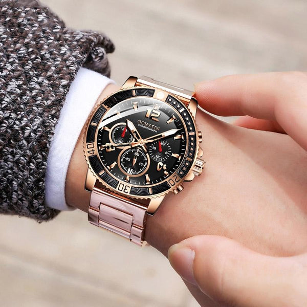 OCHSTIN 7263 Fashion Steel Strap Multifunctional Quartz Men Watch(Gold)