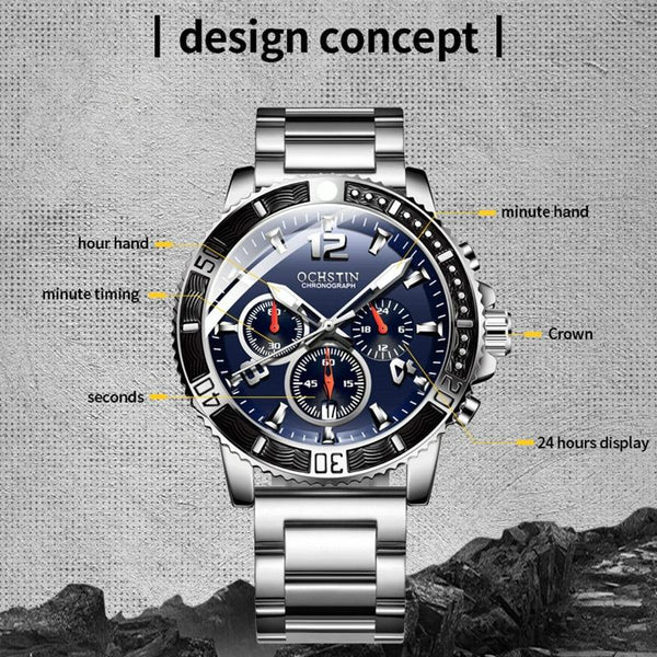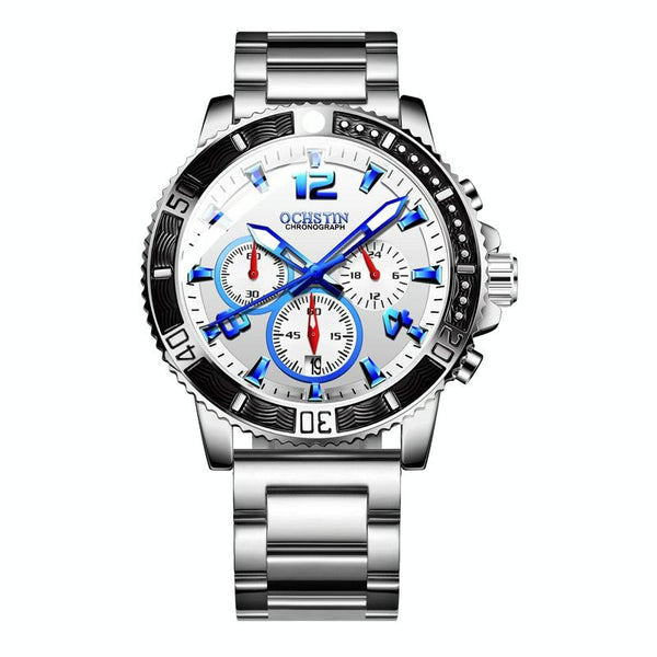 OCHSTIN 7263 Fashion Steel Strap Multifunctional Quartz Men Watch(Silver White)