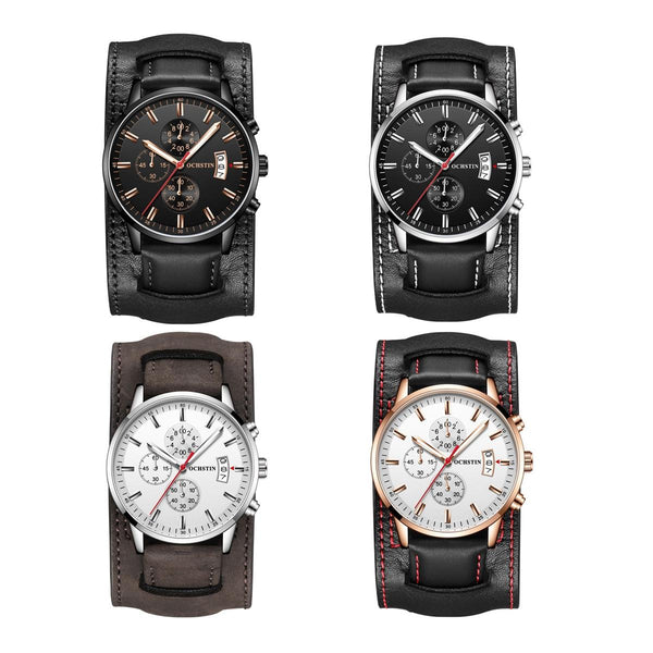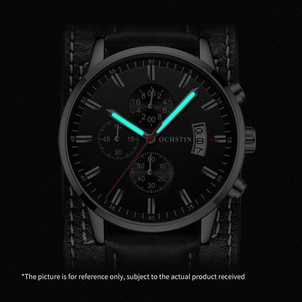 Ochstin 7266 Multifunctional Leather Wrist Wrist Waterproof Luminous Quartz Watch(Black+Black)