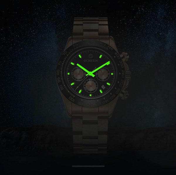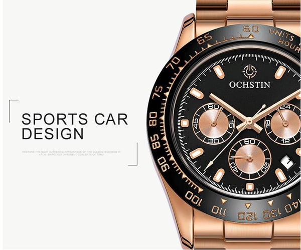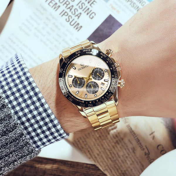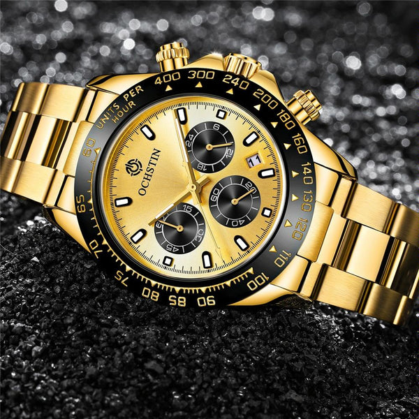 OCHSTIN Augusten 6103B Multi Function Quartz Watch Sports luminous Waterproof Watch Calendar Steel Band MenWatch(Gold)