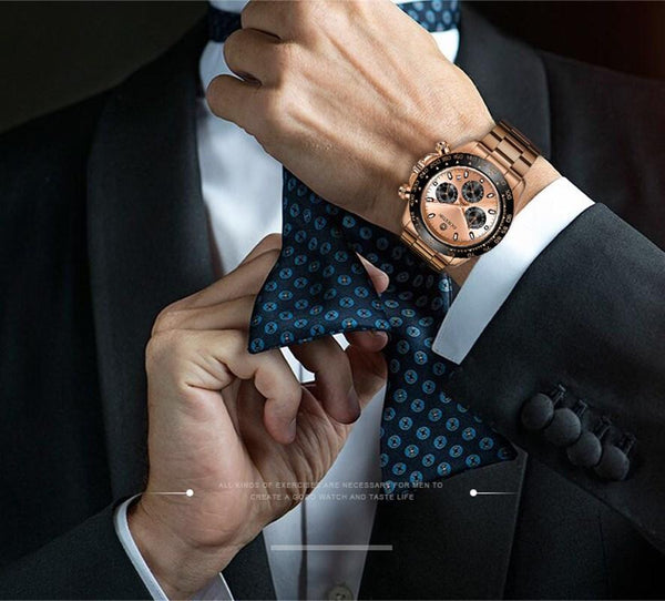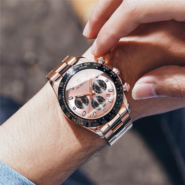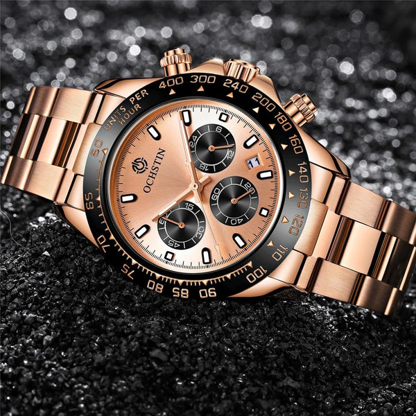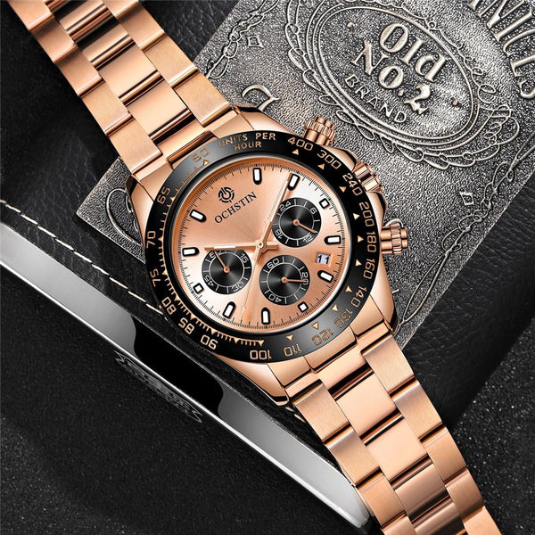 OCHSTIN Augusten 6103B Multi Function Quartz Watch Sports luminous Waterproof Watch Calendar Steel Band MenWatch(Rose Gold)