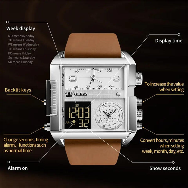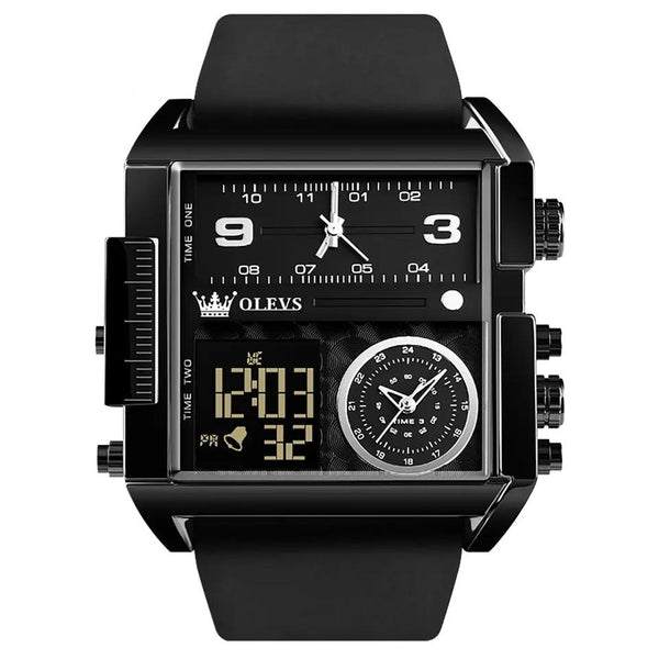 OLEVS 1101 Sports Multi-Function Square Men Quartz Electronic Watch(Black)
