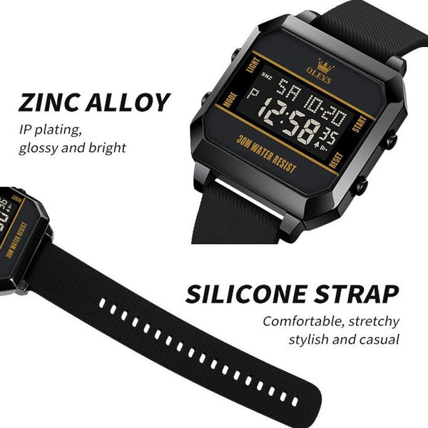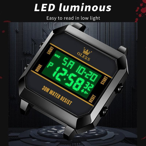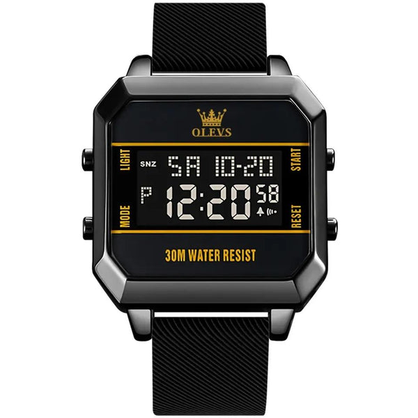 OLEVS 1103 Sports Multi-Function Square Intelligent Electronic Watch Waterproof Men Watch(Black)