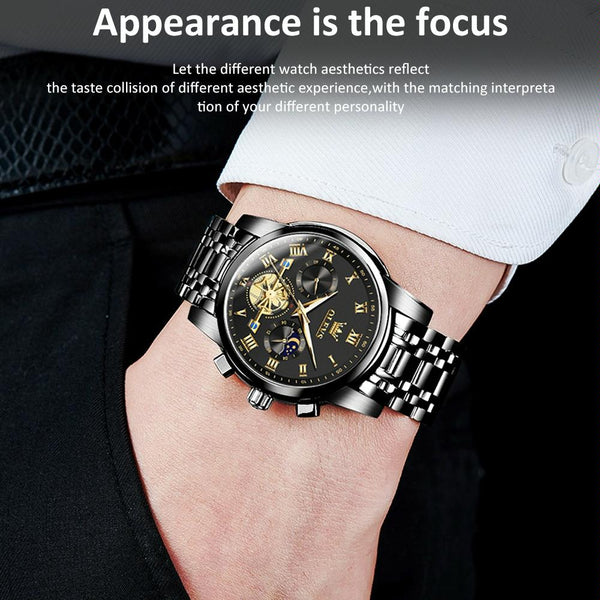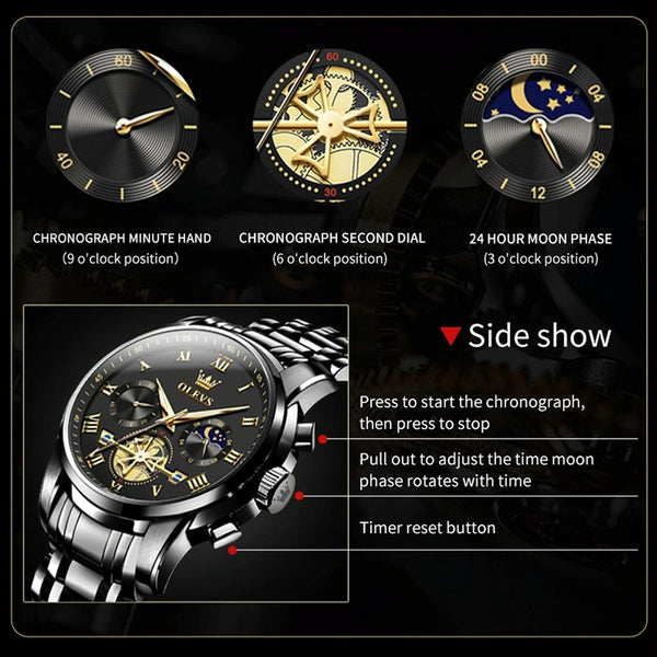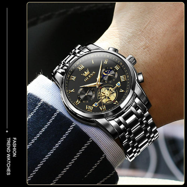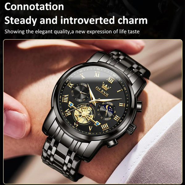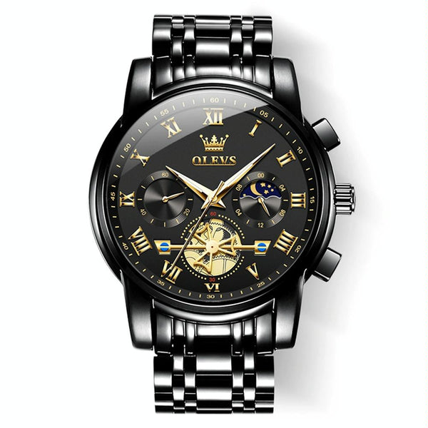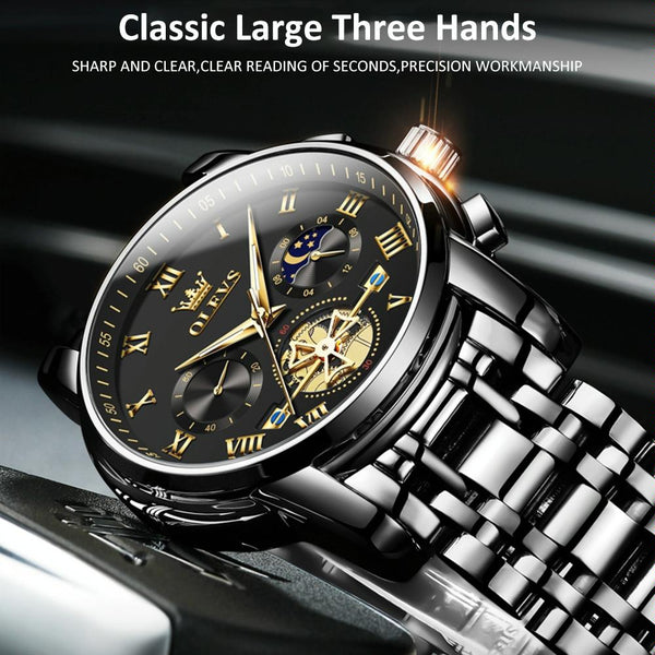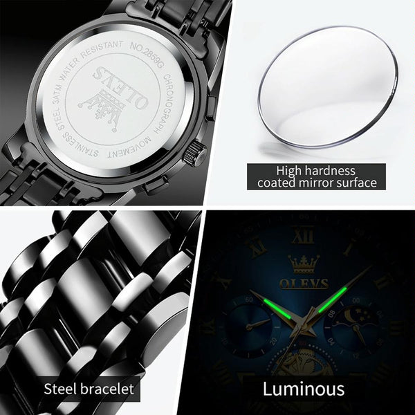 OLEVS 2859 Men Multifunctional Luminous Waterproof Quartz Watch(Black)