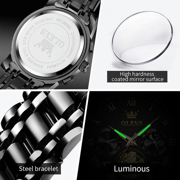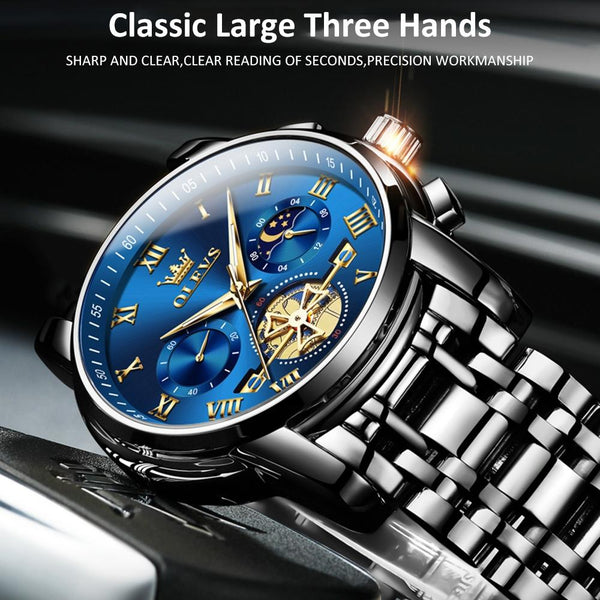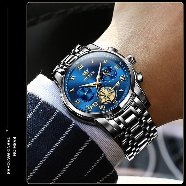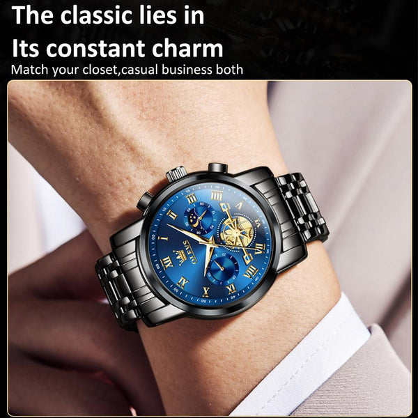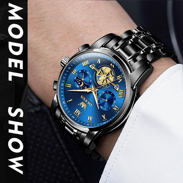 OLEVS 2859 Men Multifunctional Luminous Waterproof Quartz Watch(Black + Blue)