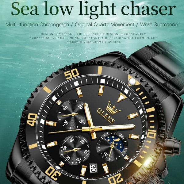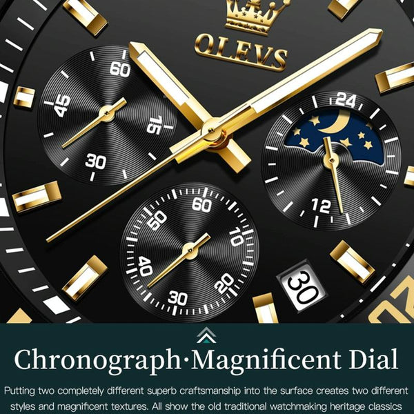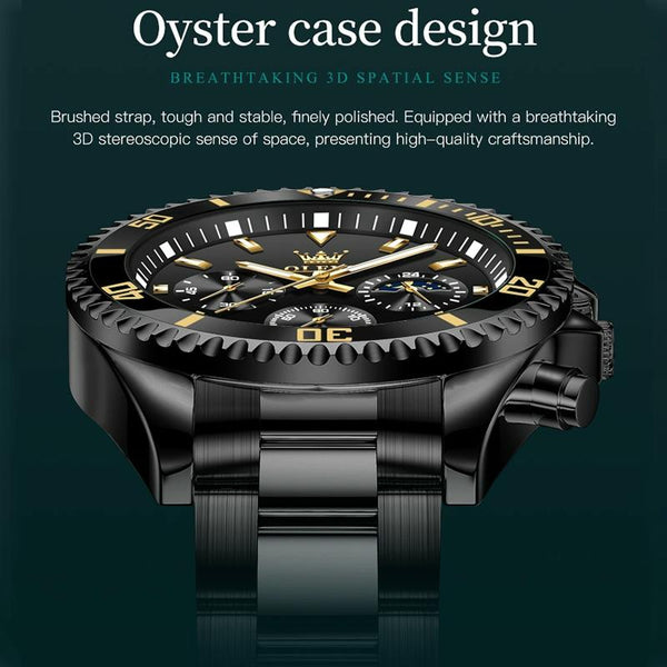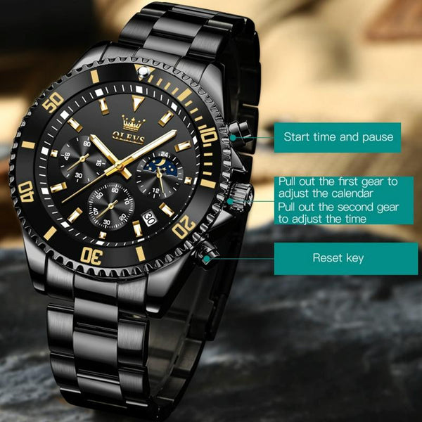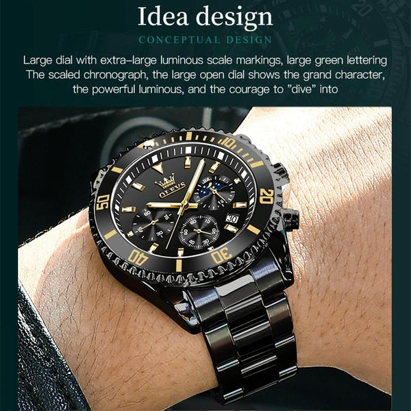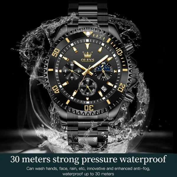 OLEVS 2870 Men Multifunctional Chronograph Three Eyes Waterproof Quartz Watch(Black)