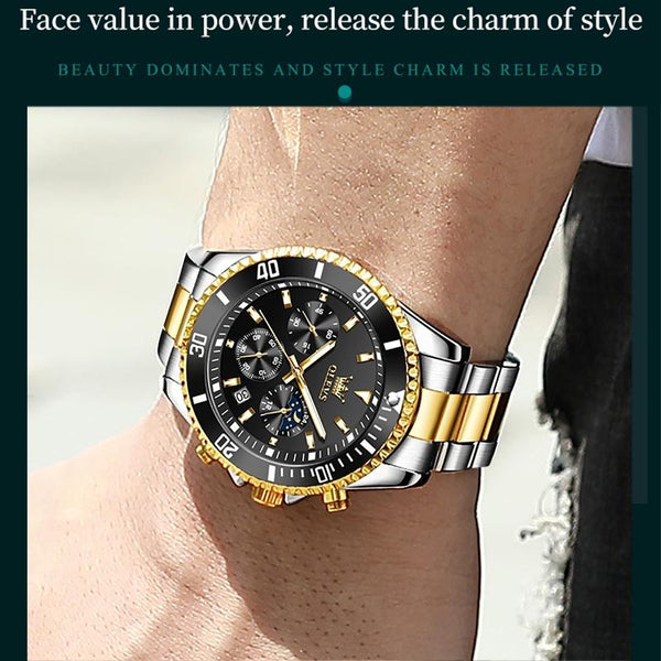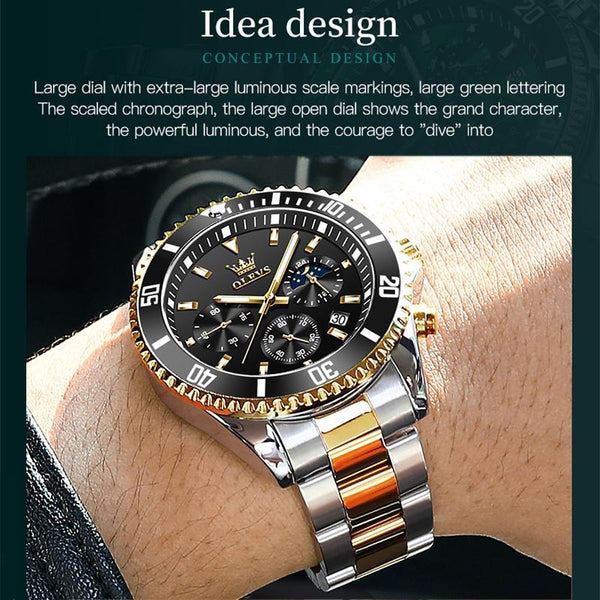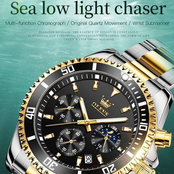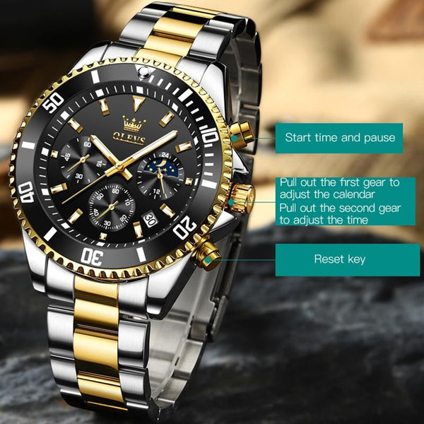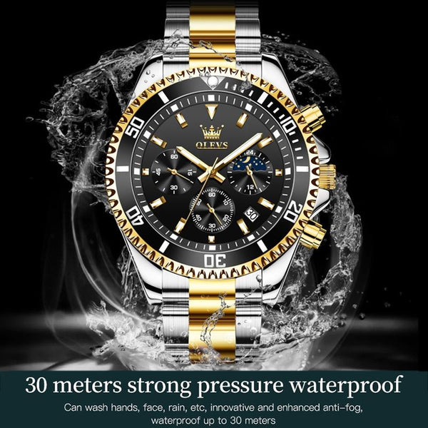 OLEVS 2870 Men Multifunctional Chronograph Three Eyes Waterproof Quartz Watch(Black + Gold)
