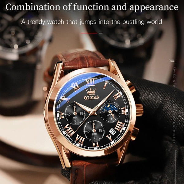 OLEVS 2871 Men Multifunctional Sports Chronograph Luminous Quartz Watch(Coffee + Rose Gold)