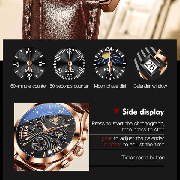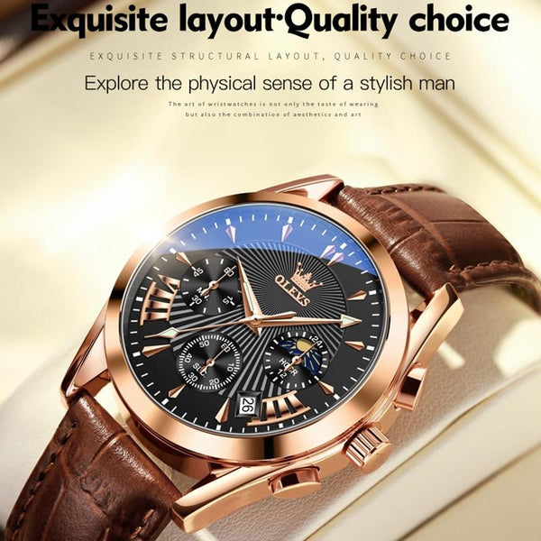 OLEVS 2876 Men Multifunctional Sports Chronograph Quartz Watch(Black + Rose Gold)