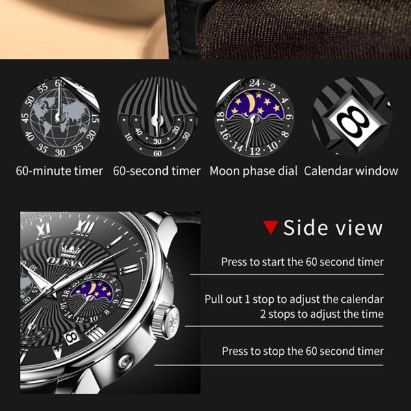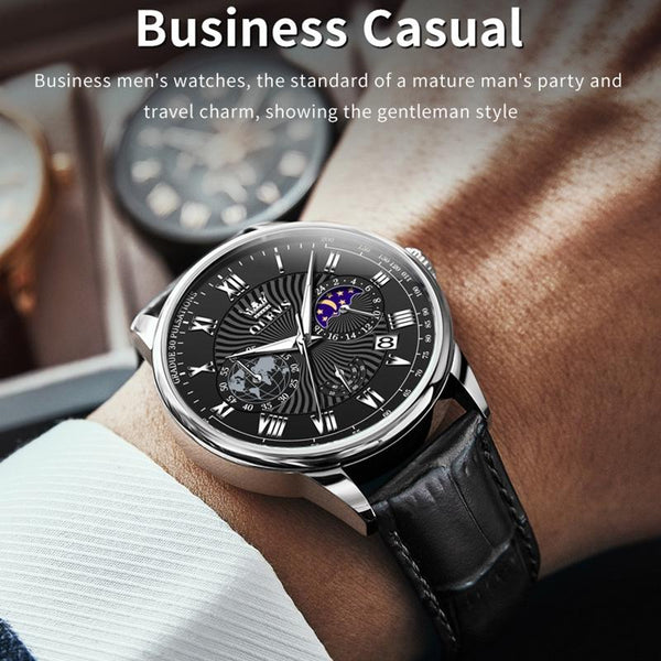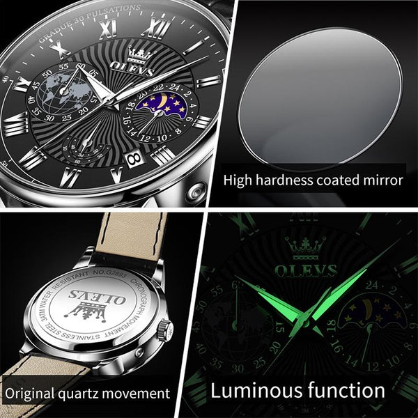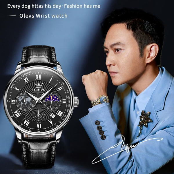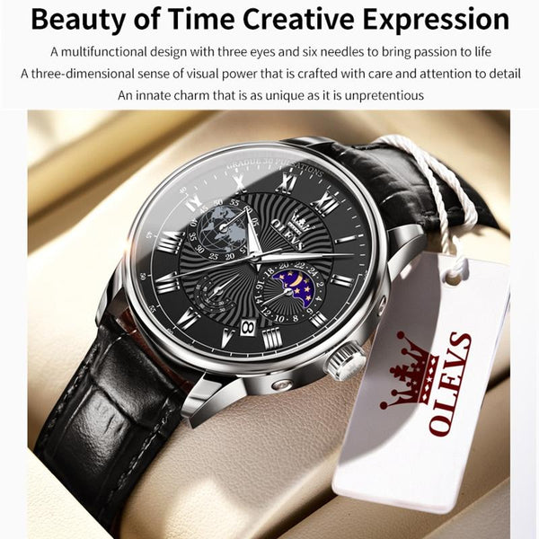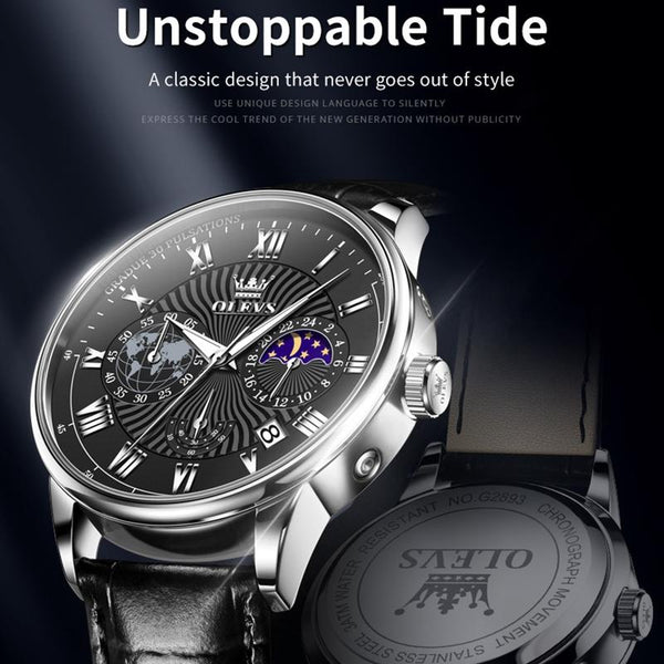 OLEVS 2893 Men Multifunctional Business Quartz Watch(Black)