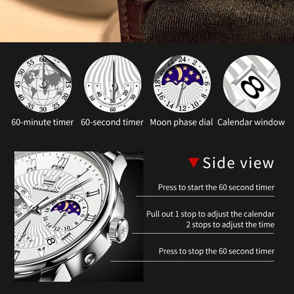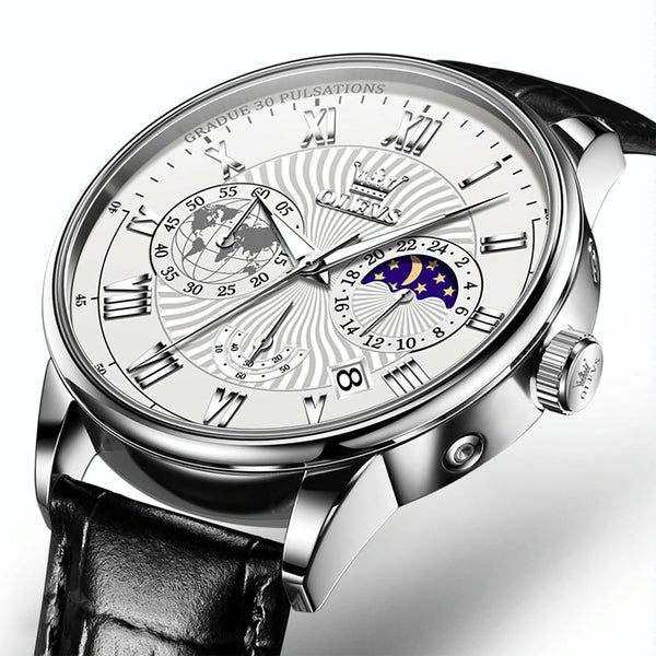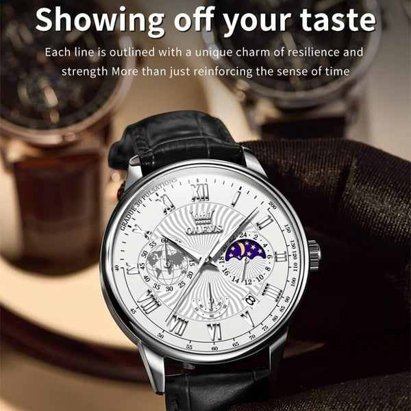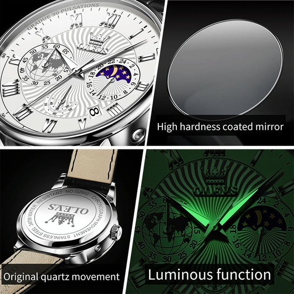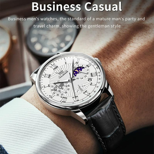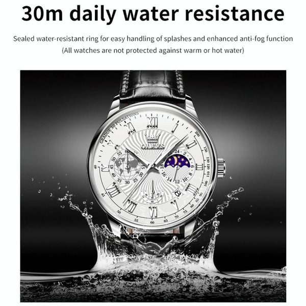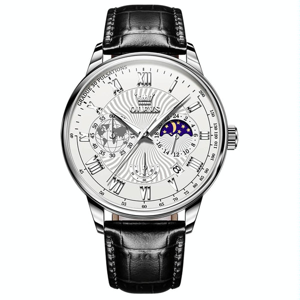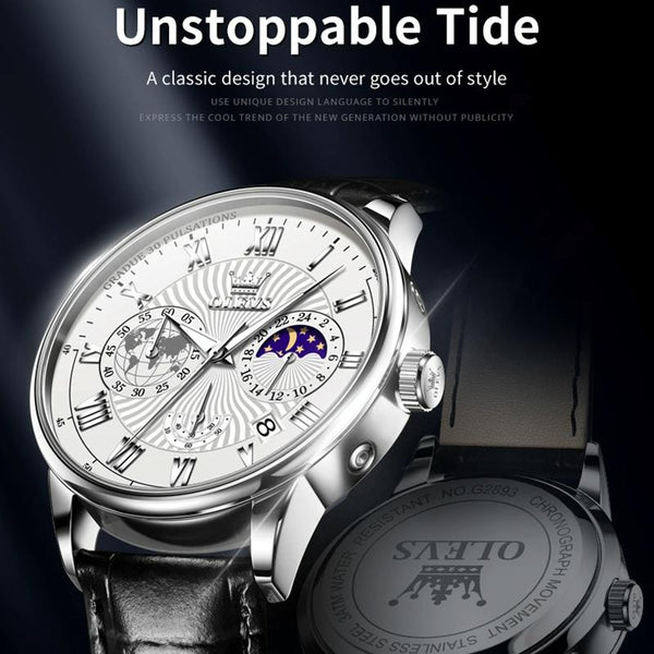 OLEVS 2893 Men Multifunctional Business Quartz Watch(Black + White)