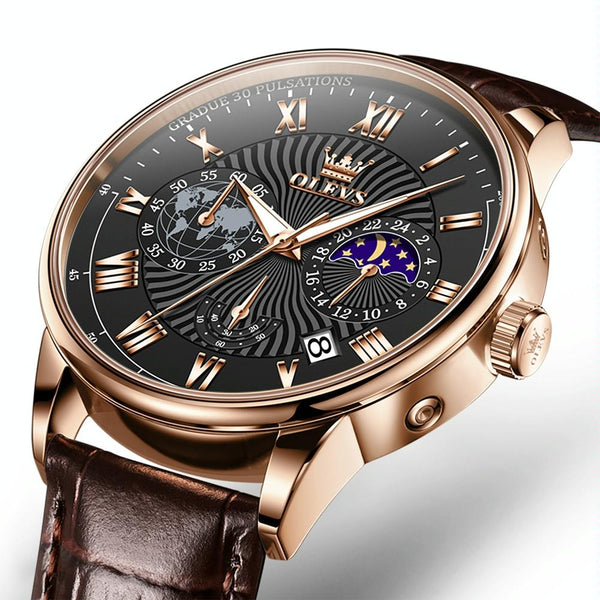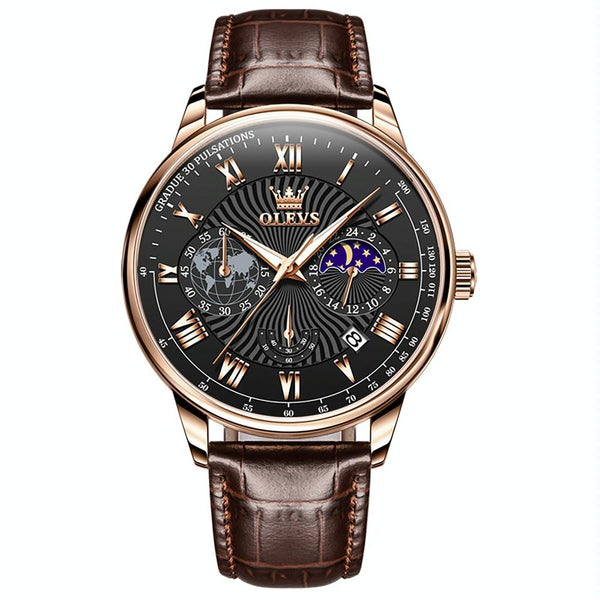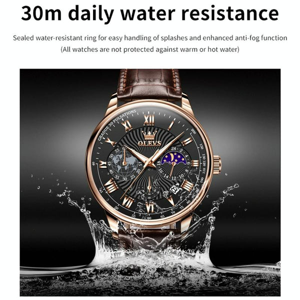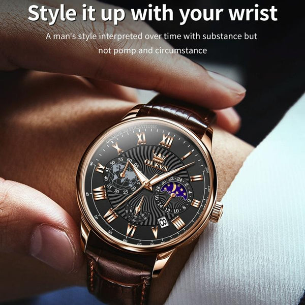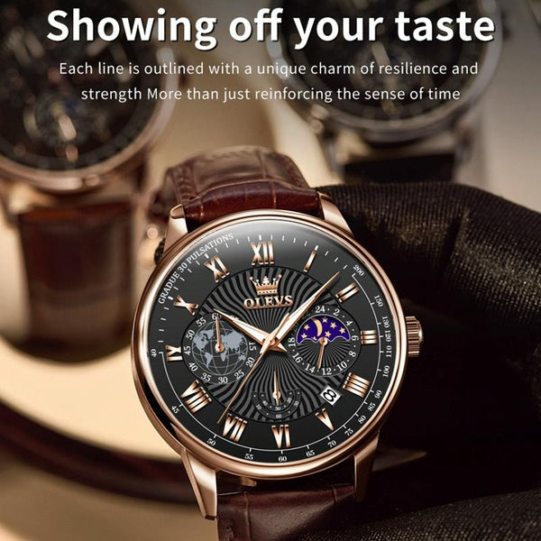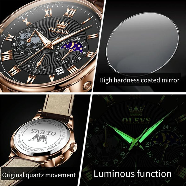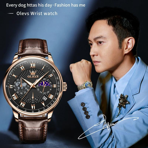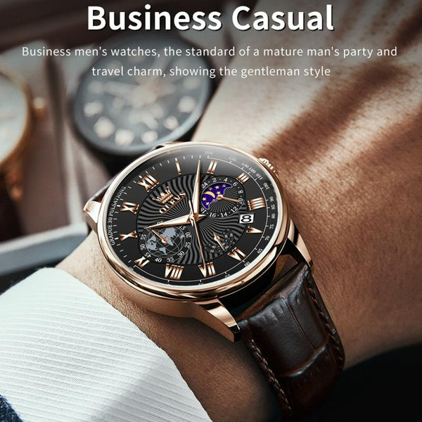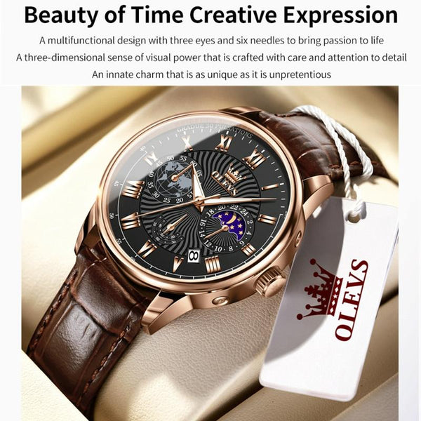 OLEVS 2893 Men Multifunctional Business Quartz Watch(Brown + Black)