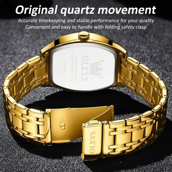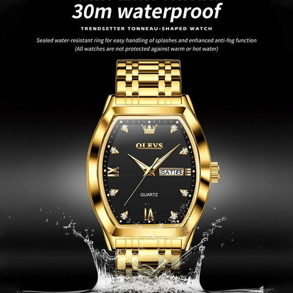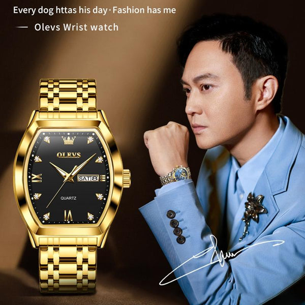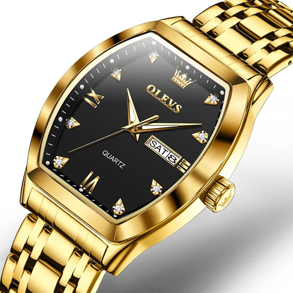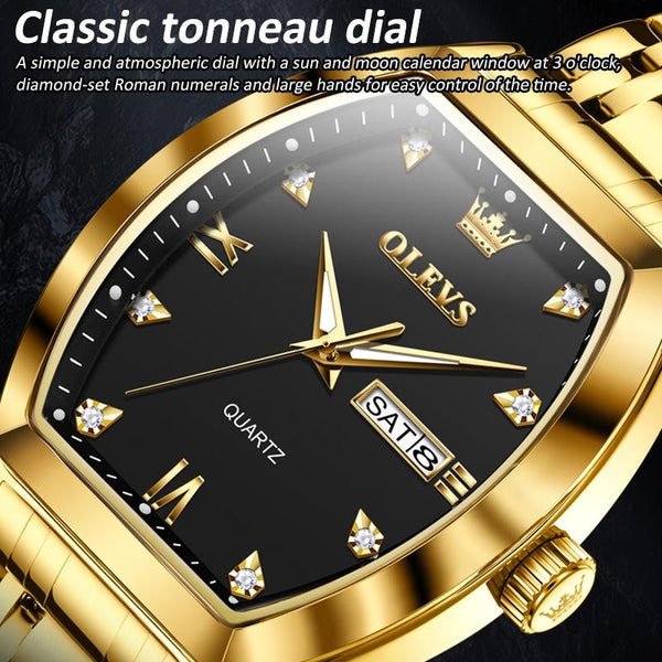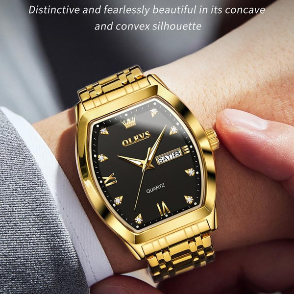 OLEVS 5528 Men Business Dual Calendar Wine Barrel Waterproof Quartz Watch(Black + Gold)