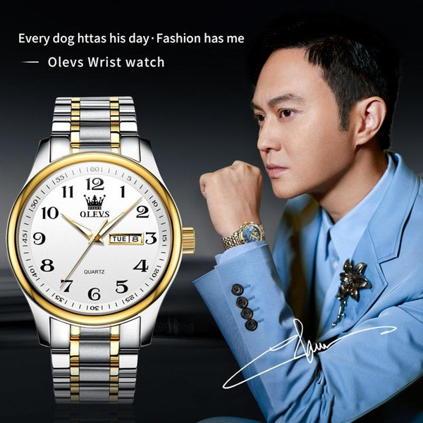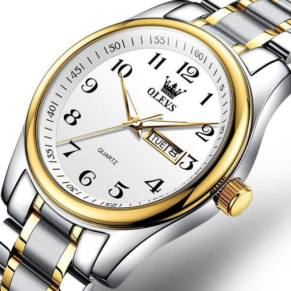 OLEVS 5567 Men Steel Strap Waterproof Quartz Watch(White + Gold)