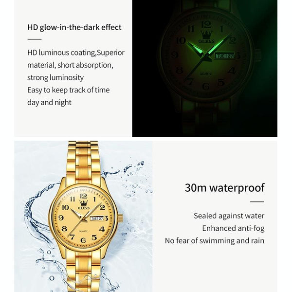 OLEVS 5567 Women Steel Strap Waterproof Quartz Watch(Gold)