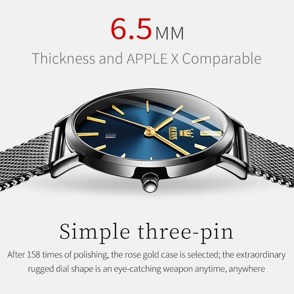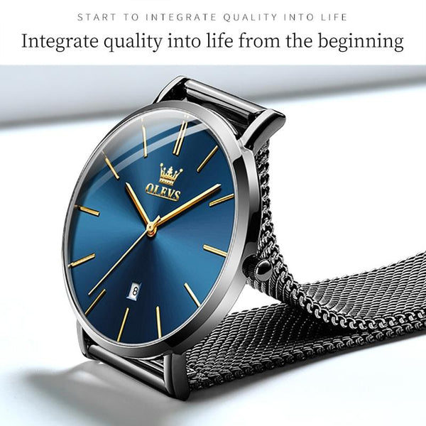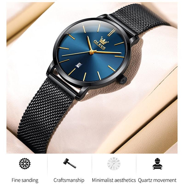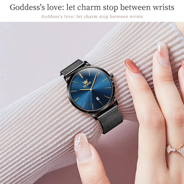 OLEVS 5869 Ladies Business Waterproof Steel Strap Quartz Watch(Blue + Black)