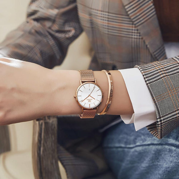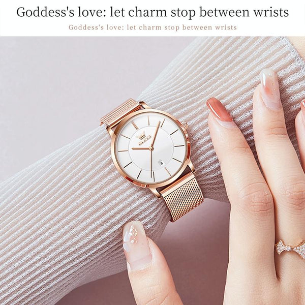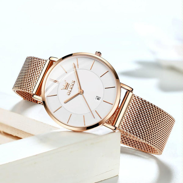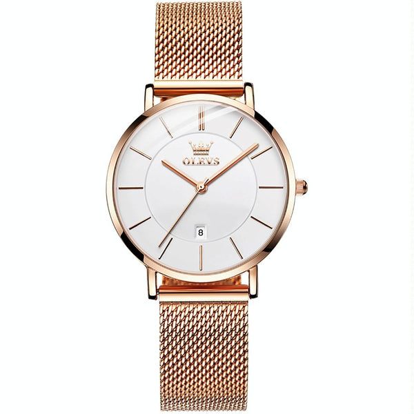 OLEVS 5869 Ladies Business Waterproof Steel Strap Quartz Watch(White + Rose Gold)