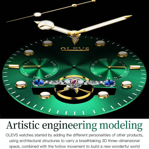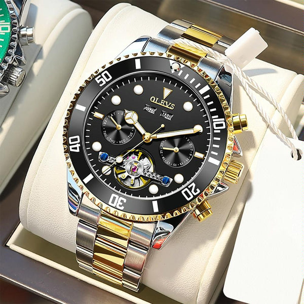 OLEVS 6605 Men Multifunctional Waterproof Mechanical Watch(Black + Gold)