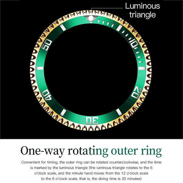 8. Equipped with a unidirectional rotating outer ring, which is convenient for timing