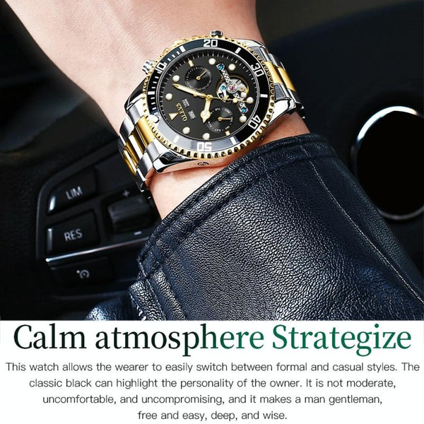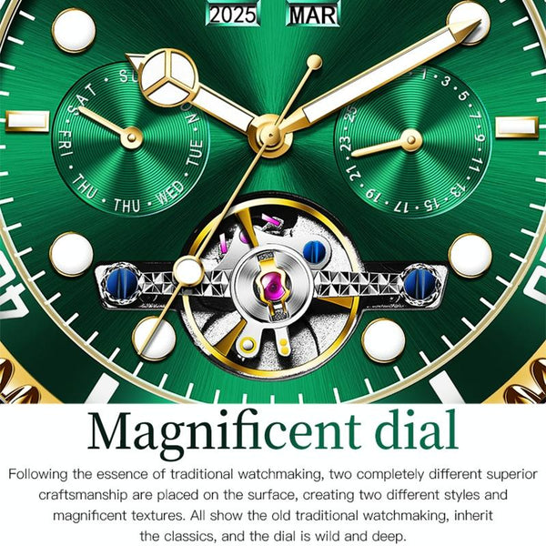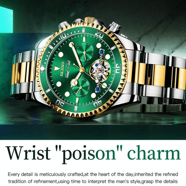 OLEVS 6605 Men Multifunctional Waterproof Mechanical Watch(Green + Gold)
