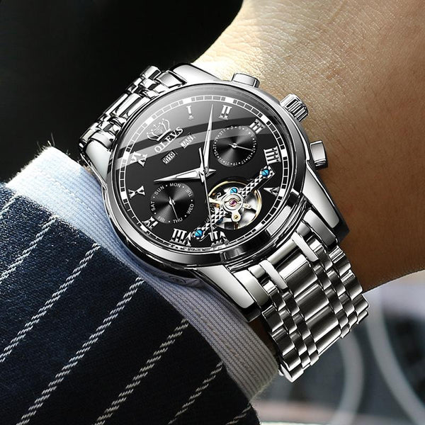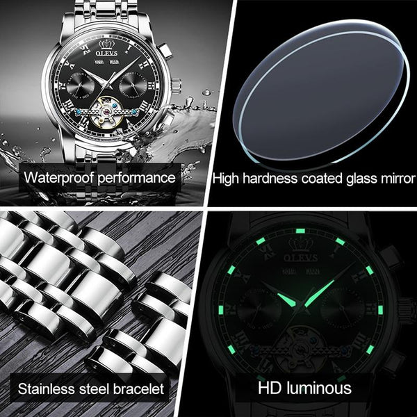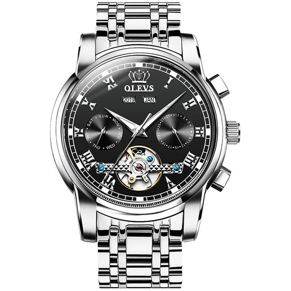 OLEVS 6607 Multi-function Men Big Flywheel Automatic Waterproof Mechanical Watch(Black)