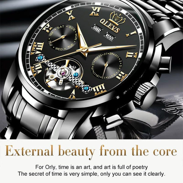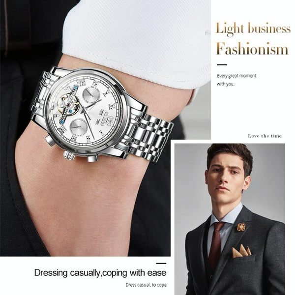 OLEVS 6607 Multi-function Men Big Flywheel Automatic Waterproof Mechanical Watch(Silver Gold Green)