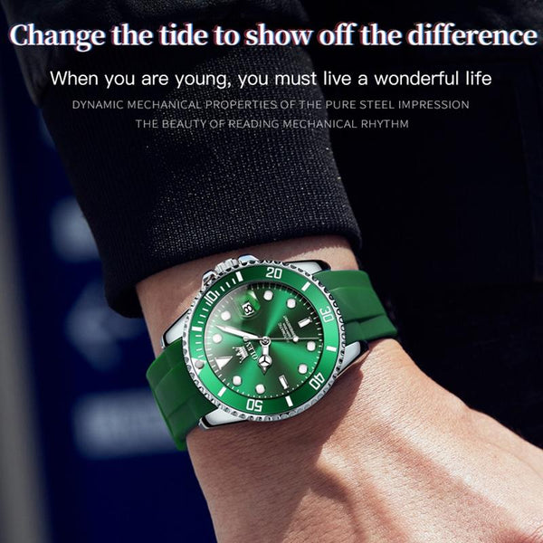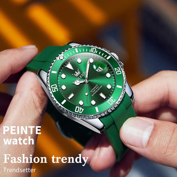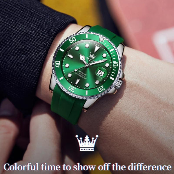 OLEVS 6650 Men Luminous Waterproof Silicone Strap Mechanical Watch(Green)