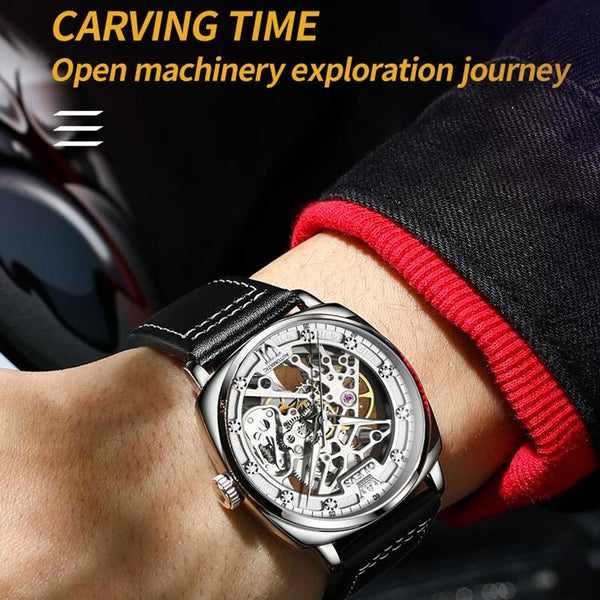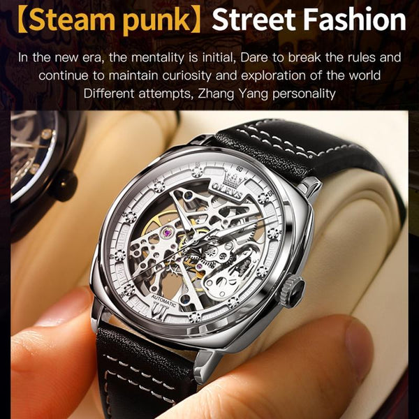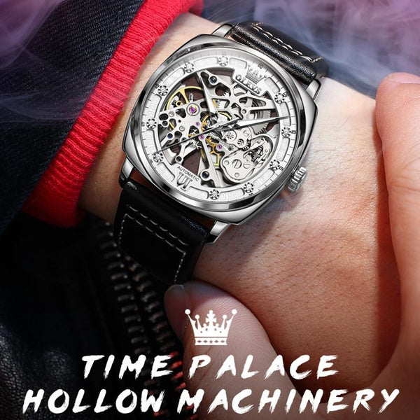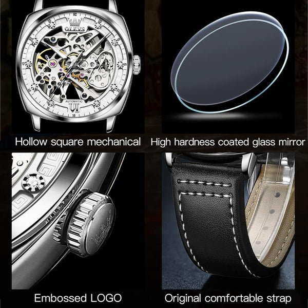 OLEVS 6651 Men Luminous Waterproof Hollow Mechanical Watch(White)