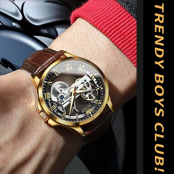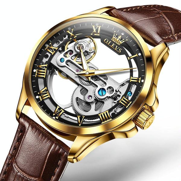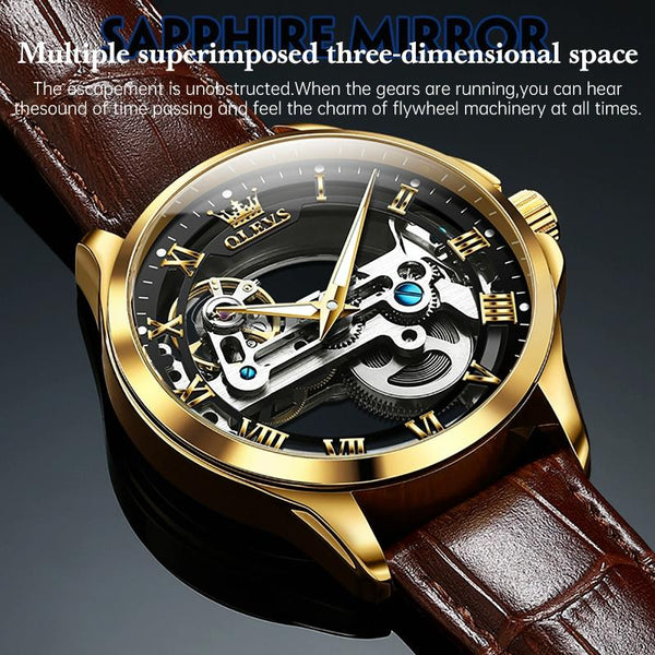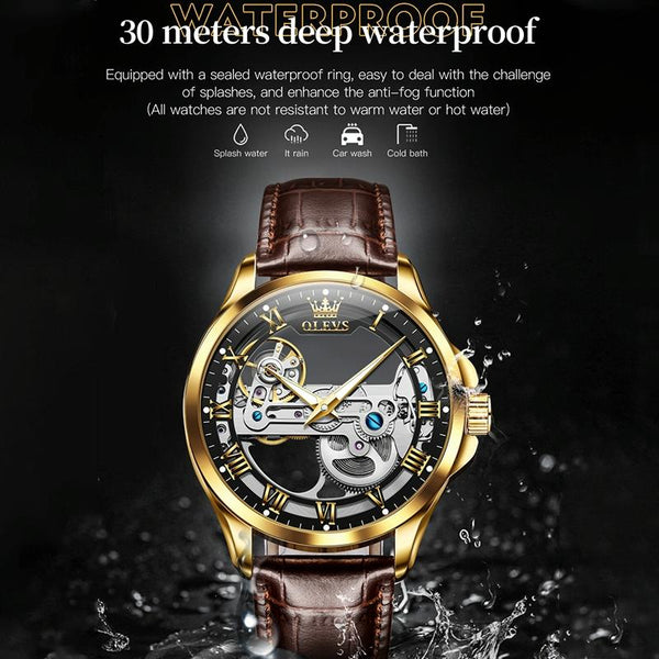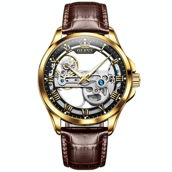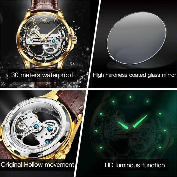 OLEVS 6661 Men Fashion Luminous Waterproof Mechanical Watch(Black + Gold)