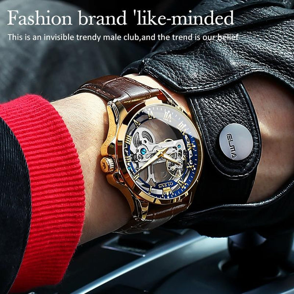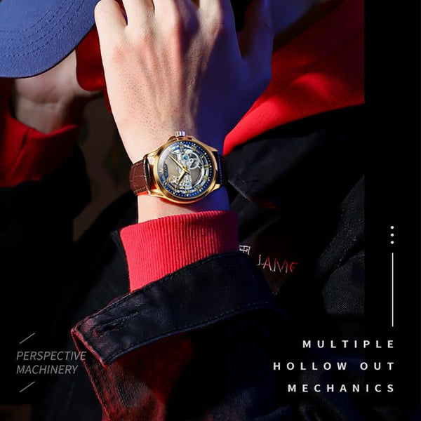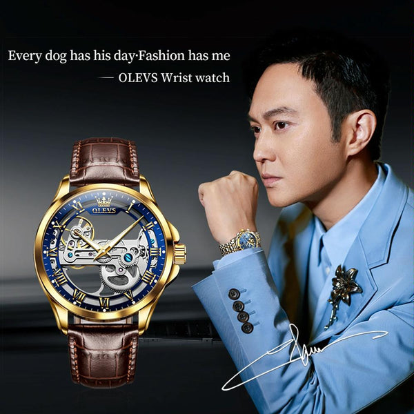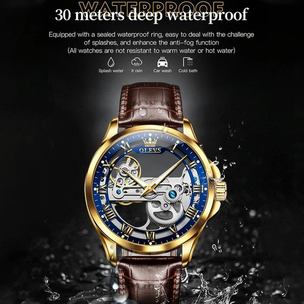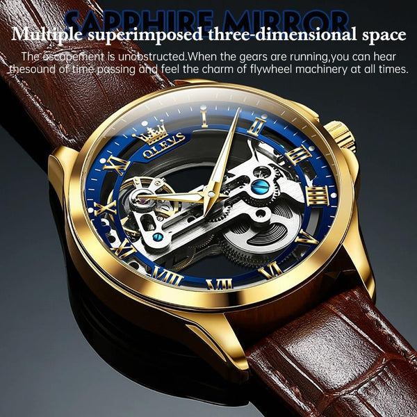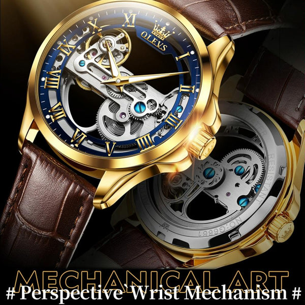OLEVS 6661 Men Fashion Luminous Waterproof Mechanical Watch(Blue + Gold)