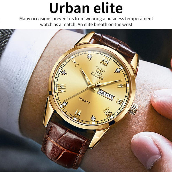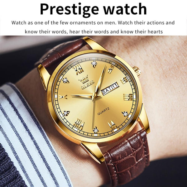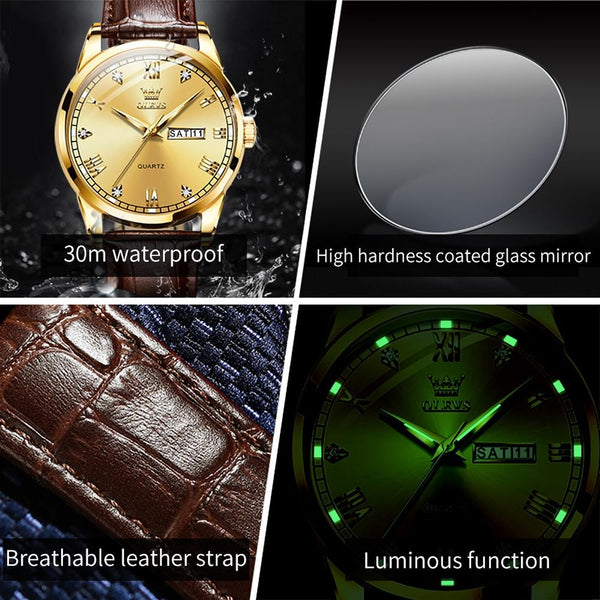 OLEVS 6896 Men Multifunctional Luminous Waterproof Quartz Watch(Gold)