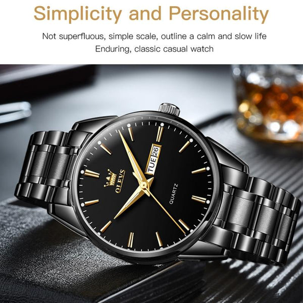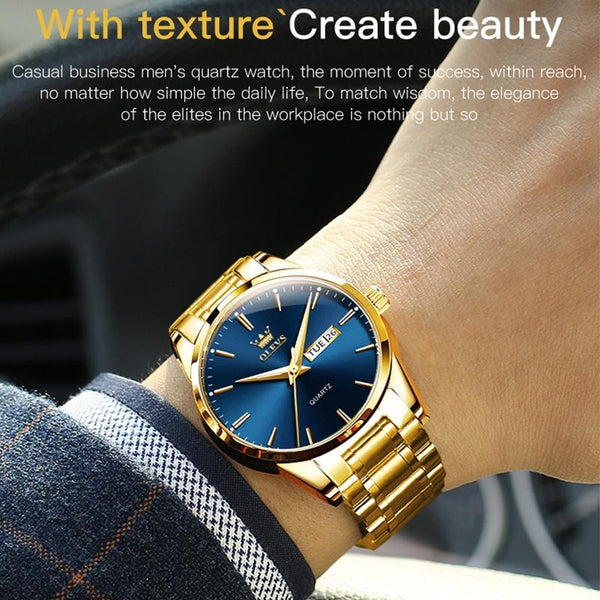 OLEVS 6898 Men Waterproof Luminous Steel Watch Band Quartz Watch(Gold Black)