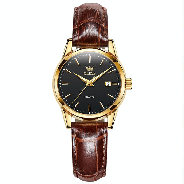 OLEVS 6898 Women Fashion Waterproof Dual Calendar Quartz Watch(Brown Black)