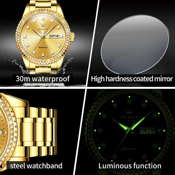OLEVS 7003 Men Multifunctional Waterproof Mechanical Watch(Gold)