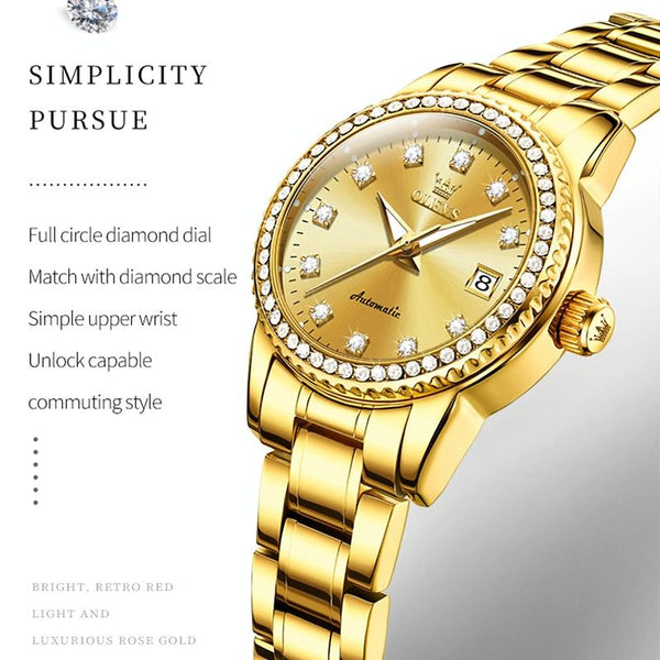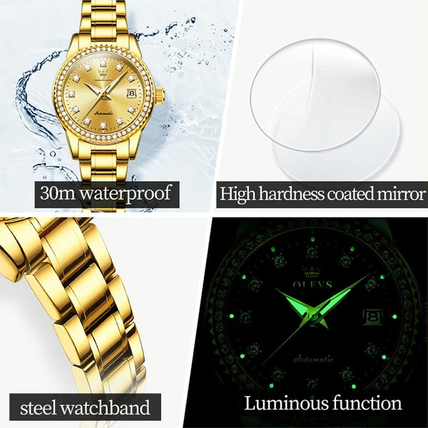 OLEVS 7003 Women Multifunctional Waterproof Mechanical Watch(Gold)