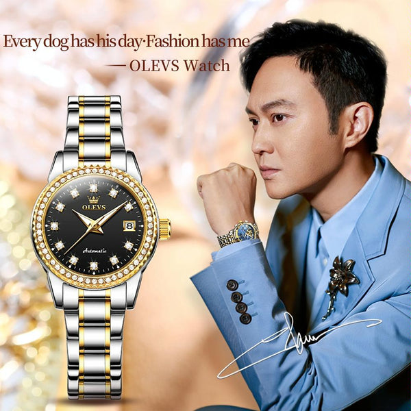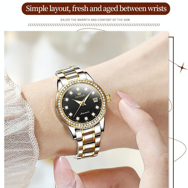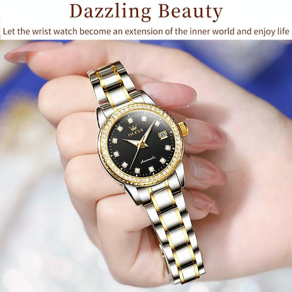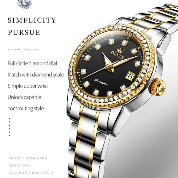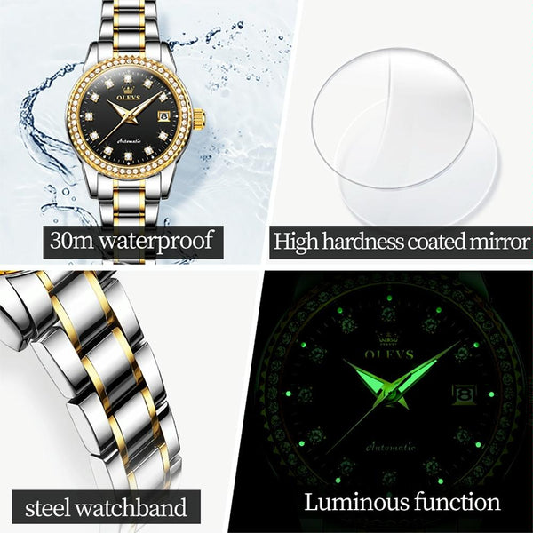 OLEVS 7003 Women Multifunctional Waterproof Mechanical Watch(Gold + Black)