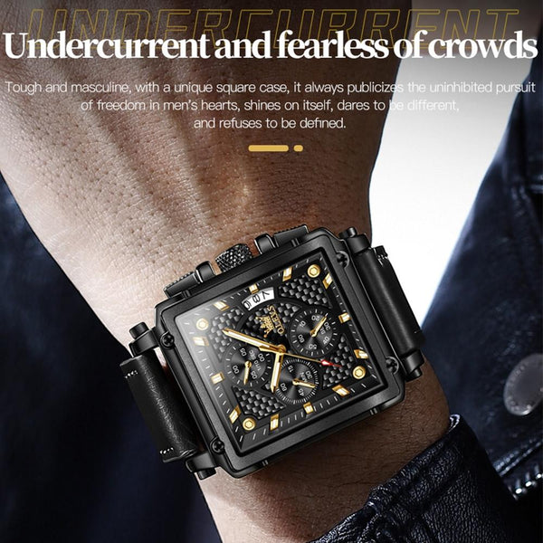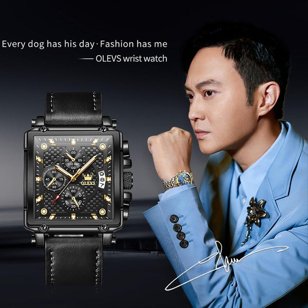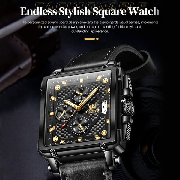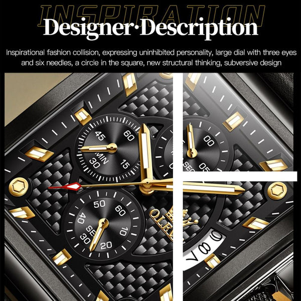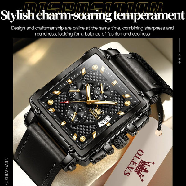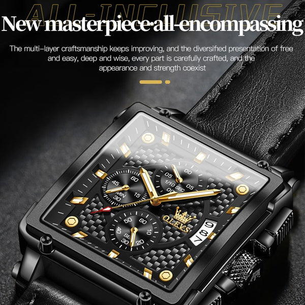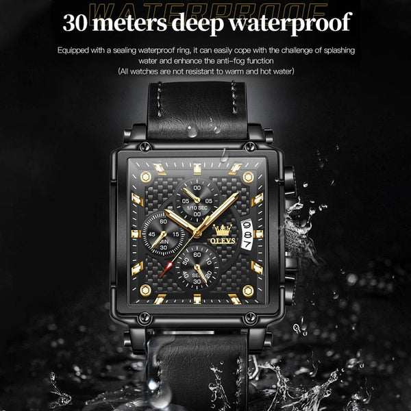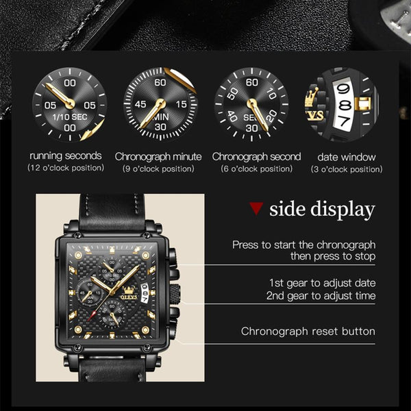 OLEVS 9925 Men Square Dial Multifunctional Waterproof Quartz Watch(Black)
